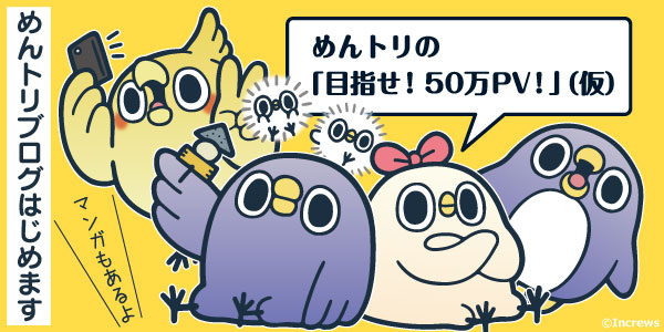 ブログは平日毎日更新予定。スタッフさんのお話や、スタンプ制作のお話を出来ればなぁと考えております。さらに!毎週水曜日には書き下ろし「めんトリ」のマンガを掲載を予定しております。ますます目が離せない「めんトリ」さんたちの活躍にご注目ください!