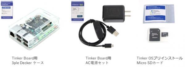 TechShareでは、Tinker Boardの国内販売開始と同時に、Tinker Board用のケース、AC電源、Tinker OS書き込みMicroSDカードなど必須となるアクセサリー製品も同時発売いたします。