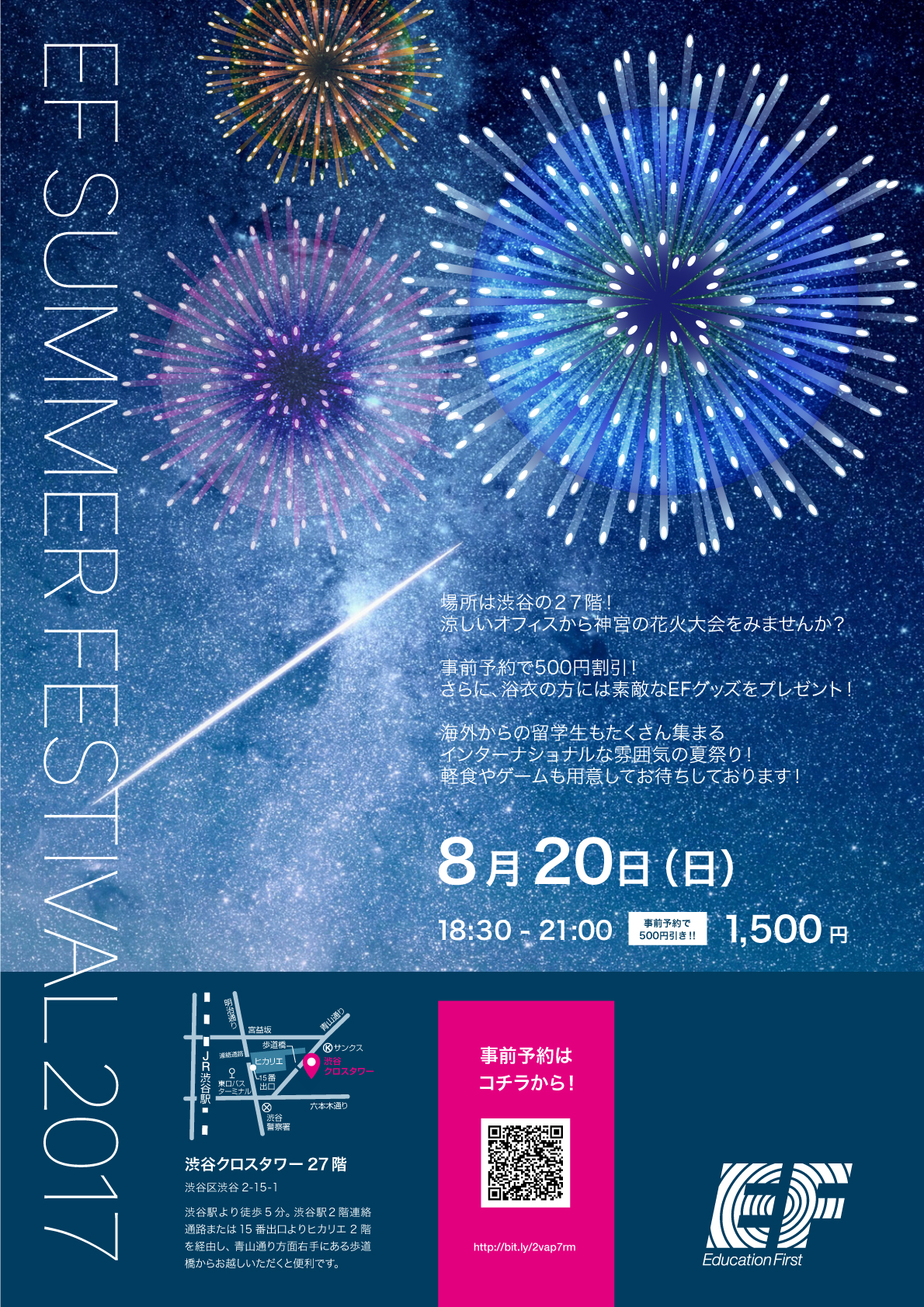 留学・語学教育事業を展開する世界最大級の私立教育機関、イー・エフ・エデュケーション・ファーストの日本法人であるイー・エフ・エデュケーション・ファースト・ジャパン株式会社(東京都渋谷区渋谷 2-15-1 以下EF)は、2017年8月20日(日)東京・渋谷にて国際交流を目的とした夏祭り「EF SUMMER FESTIVAL 2017」を開催致します。