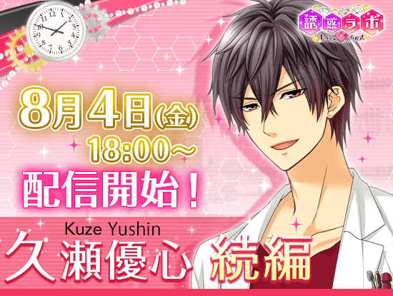 ユーザーからの熱い要望をうけ、続編シリーズの第1弾としてワンダーラボの至宝“久瀬 優心”の続編ルートを8月4日より配信する事が決定いたしました。配信開始後にログインしていただくと、ガチャチケットとシナリオ全回復チケットをもれなくプレゼントいたします。