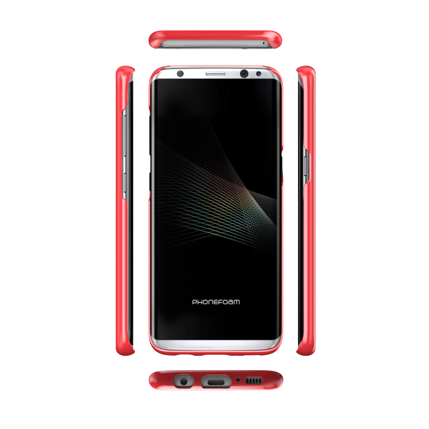 Galaxy S8の特徴であるエッジスクリーンの機能に対応し、液晶の長辺側をギリギリまで後退させた構造になっておりながら、液晶面を下側にして伏せて置いた場合でも、液晶が直に机や床などに触れることがないよう、空間を確保する設計となっています。