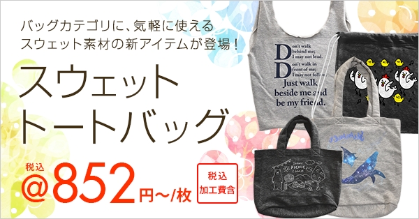 【やわらか素材のスウェット生地バッグにオリジナルプリント!】