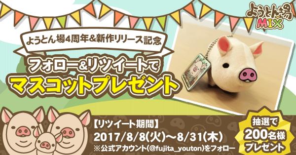 世界600万ダウンロードを突破した「ようとん場」の4周年、そして新作「ようとん場MIX」のリリースを記念しての感謝キャンペーンを開催!