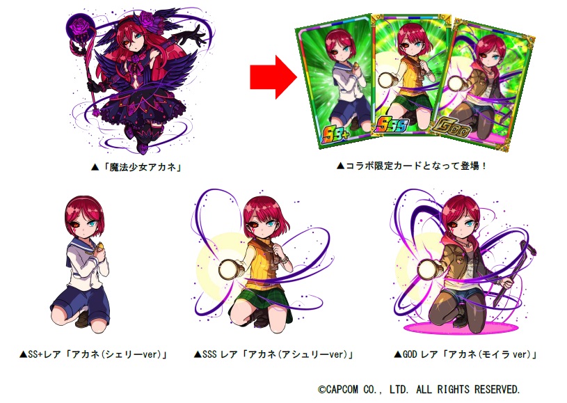 コラボの再復刻開催を記念して、新たにコラボ限定カードが登場!今回は『ドラゴンポーカー』の「魔法少女ラン」や「ベルモット」に続き、「魔法少女アカネ」が『バイオハザード』シリーズの“守りたいヒロイン”たちの衣装をまとって登場します!