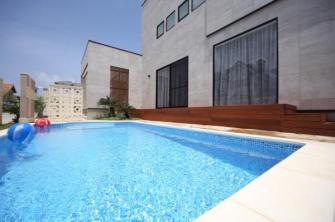 モデルハウスは日本一のリゾート地である沖縄に相応しいフランス/デジョユ社の自宅用プール、屋上テラスにはBBQコンロ付きのソファーセットとジャグジーバスも兼ね備えています。