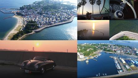 2017年7月、その日間賀島で、愛知県を中心に空撮業務を展開している「空撮サービス」がドローンを用いて空撮を行いました。撮影に際しては、国土交通省から許可・承認を得て夜間飛行と目視外飛行を実施し、ビンテージカーである「ポルシェ356スピードスター」を沿岸部で走行させました。