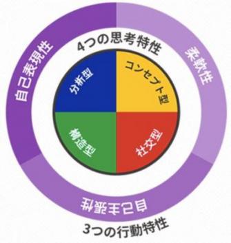 第1段階は、自分の持つ思考特性、行動特性を知り、さらにメンバーについても知ることが軸となります。特性を知る『行動変革コンサル』のツールとして、4つの思考特性と3つの行動特性を表す「エマジェネティックス」プロファイルを活用します。これは能力を測るものではなく、自分やメンバーの特性を図式化したもので、世界トップのIT企業マイクロソフト、オラクルで使っていることから当社でも導入しました。