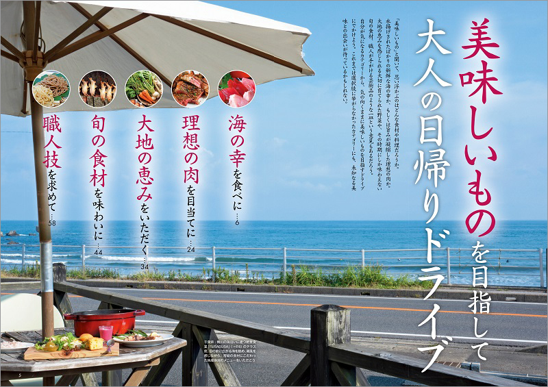シリーズを通じてご提案している「思い立ったらすぐ行ける」「ちょっとした発見がある」「おしゃれでちょっと贅沢」といったポリシーはそのままに、今回、首都圏から美食を目当てに旅したい方向けの日帰り旅をご紹介したのが、『首都圏発日帰り大人の小さな旅美食ドライブ』です。