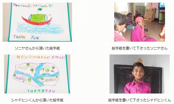 「若者の家」では識字・英語・図書室の教育クラスが実施され、識字支援を受けた子どもたちから、『ムジコロジー・スマイル基金』宛に絵手紙をいただきました。