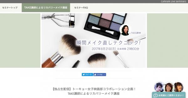 今回のライブセミナーには、カフェトークのメイクアップ看板講師・TAKEによるリカバリーメイク講座が登場。トーキョー女子映画部と映画『新感染 ファイナル・エクスプレス』とのコラボレーション企画を、カフェトークで独占生配信致します!