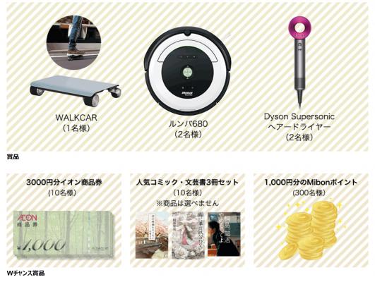 「mibonポイント 1,000円分」 300名 (※ネットストアmibonで利用可能なポイント)