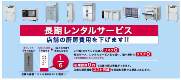 LH株式会社(本社:東京都目黒区、代表取締役:林昭信)は、厨房機器が長期的にレンタルできる新サービス「キキレン」を2017年8月より提供開始いたしました。いままで、飲食店開業における厨房機器の導入方法は、「購入」か「リース」が主な手段でした。そのため、飲食店開業には多額の初期投資が必要となっており、経営者の大きな課題でした。そこで、長期厨房機器レンタルサービス「キキレン」で、厨房機器への初期投資を削減できて、多くの飲食店が負担なく開業できるようにとの思いから本サービスを開始いたしました。