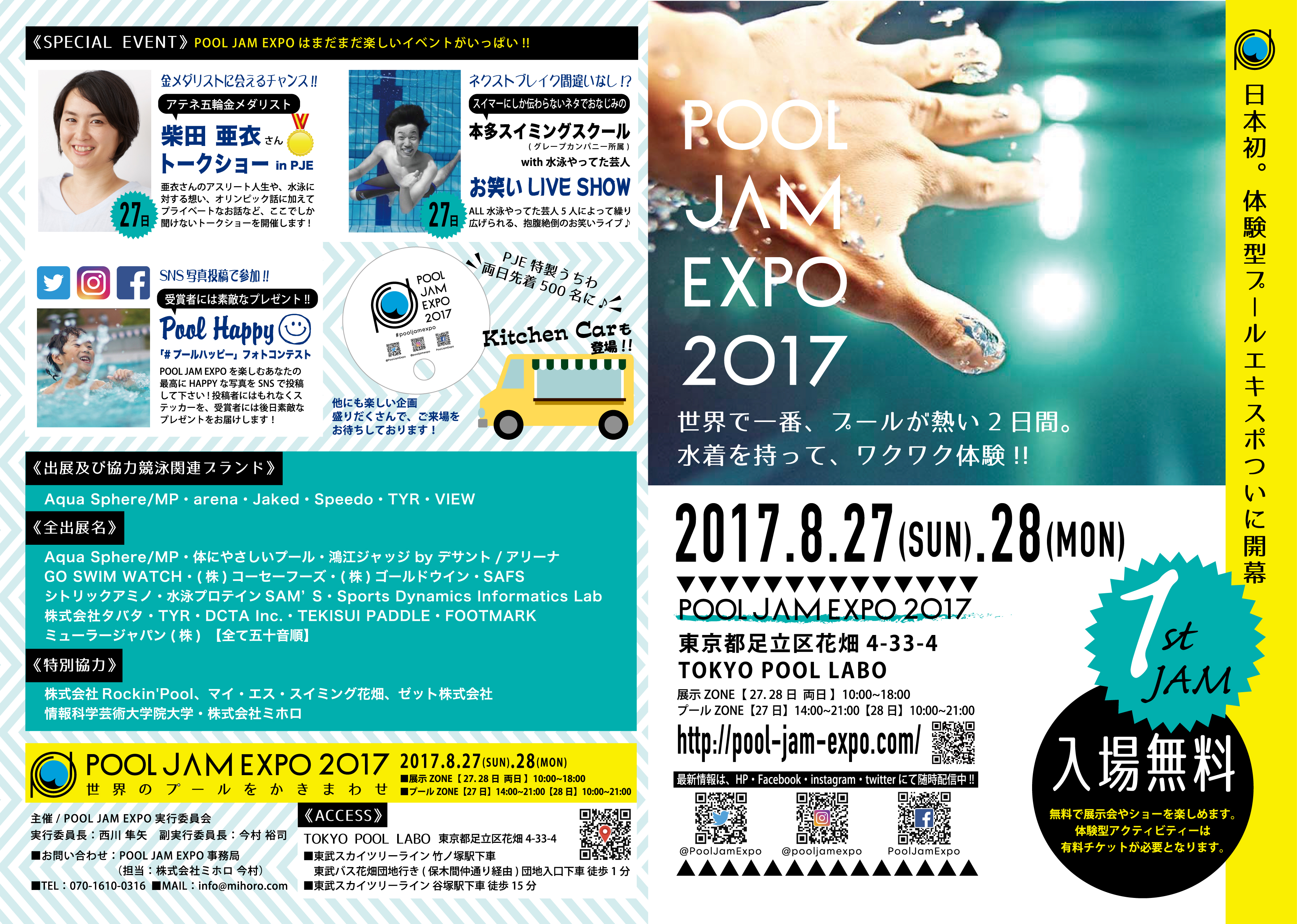 POOL JAM EXPO 実行委員会(実行委員長:西川隼矢、株式会社Rockin' Pool、東京都台東区)は、 水泳に関連する事業者や団体・個人による参加者体験型アトラクション「POOL JAM EXPO 2017」を、TOKYO POOL LABO(東京都足立区)で開催します。プールと光技術、プールとファッションなど、業界の垣根を超 えたコラボレーションを実現することで、プール・水泳業界を活性化することを目指しています。なお、プール・水泳用品の展示会は日本初開催となります。(http://pool-jam-expo.com)。