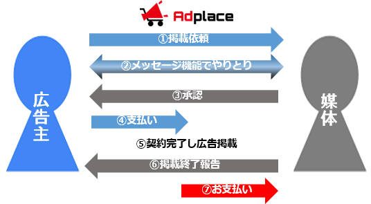 『Adplace』が業者間の仲介(契約書・金銭のやり取り等)を全て行うので、新規取引における信用問題が払拭されます。