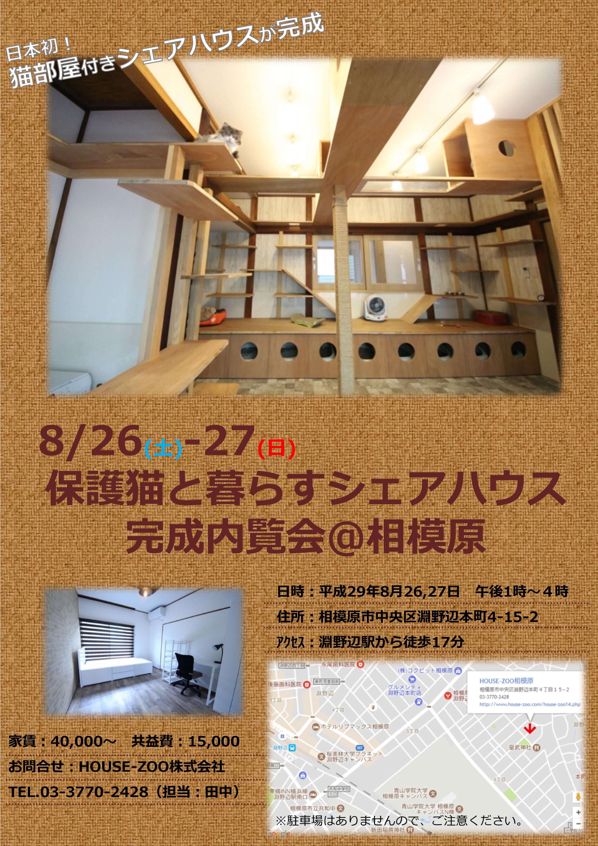 「保護猫と暮らすシェアハウス」完成内覧会を行います。