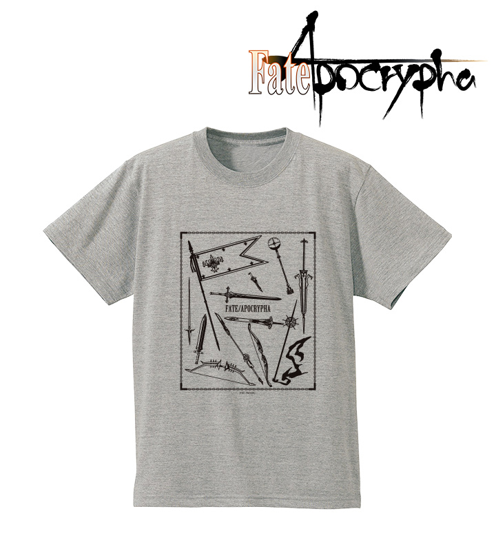 サーヴァントが使用する象徴的な武器や宝具などを線画にし、シンプルながらも作品世界を濃縮したデザインに仕上げたTシャツ、マルシェバッグの登場です。