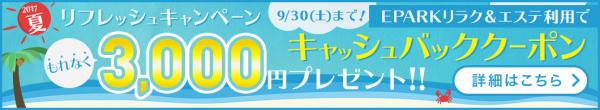 期間中アプリ内の専用ページから空メール送信すると、もれなく「EPARKリラク &エステ」利用で3,000円がキャッシュバックされるクーポンコードをプレゼント します!