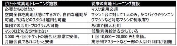 ○ビセット式高地トレーニング施設と従来のトレーニング施設の違い