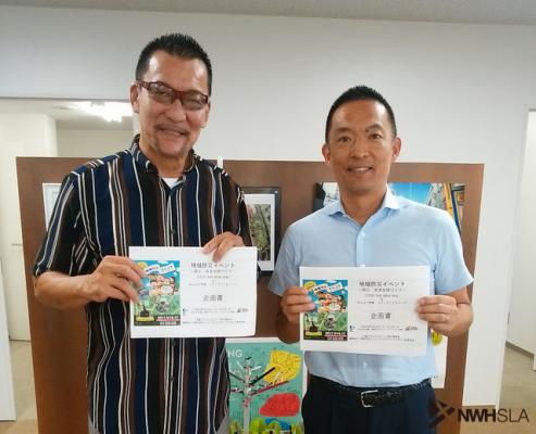 NWHスポーツ救命協会の代表を務めます蝶野選手が8月23日、9月16日&17日に代々木公園で行われる「地域防災イベント~安全・安心な街づくり~ STOP THE RISK渋谷」&「みんなで体験トラックこどもパーク」に先立ち、長谷部区長を表敬訪問しました。