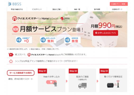 BBSSでは2016年12月から、「ウイルスバスターTM for Home Network」を販売し多くのお客様にご利用いただいております。この度、月々990円(税込)から手軽に始められる月額サービスプランの提供を開始します。