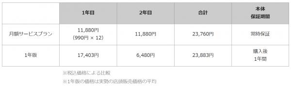 ■1年版と月額サービスプランの利用料金比較