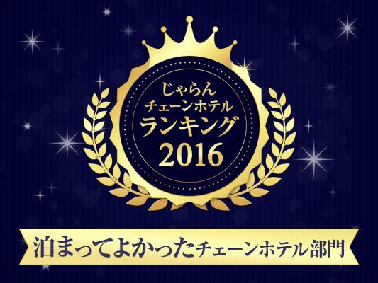 このランキングは、じゃらんnetに掲載されている全国のチェーンホテル*を対象に2016年1月1日~2016年12月31日のお客さまのクチコミ総合評価をもとに算出されています。