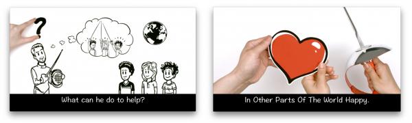 人間は本能的に指で示された場所に思わず注目してしまう原理を利用して、重要なイラストや場面転換を手で行いアテンションを高める工夫をしています。また、メッセージに脳を集中させるべく、視覚情報は少なくして、白黒の色構成にしています。アナログさとデジタルの融合が、ハイビジョン画面でもスマートフォン画面でも視聴者の心に親しみと共感を生み出します。他にも科学調査に基づいた様々なテクノロジーがsimpleshowには用いられています。