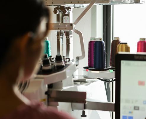 今回のリニューアルのテーマとして「生花にないアートフラワーならではの強み」を掲げ、アートフラワーのさらなる魅力を発信すべく、昨年秋から企画が始まりました。様々な企画案の中から、アートフラワーの耐久性を生かした新サービスをご提供するに至りました。当社ギフトの特徴であるフラワーメッセージ(花びらに名前入れ)を、これまでの転写式から、この度当社として初めて導入した業務用ミシンによる刺繍での名前入れに切り替えてご提供致します。