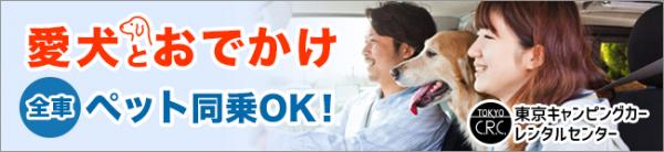 東京キャンピングカーレンタルセンター(東京C.R.C)では、愛犬と一緒にレンタルする利用者が全体の15%(7組に1組)となり、キャンピングカーでの旅行が増えてきております。東京キャンピングカーレンタルセンター(東京C.R.C)は、全車両ワンちゃんの同乗が可能!涼しくなったこれからの時期にキャンピングカーを借りて、おでかけしてみてはいかがでしょうか。