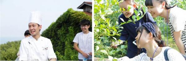 「Toshi Yoroizuka」ブランドのこだわりで、当コースの中でも重要な要素となっている「素材からのお菓子作り」を体験します。「この農園はスタッフ自ら管理を行い、朝収穫をして実際にお店でケーキに飾ったりジャムに加工しています。まず素材を見てから、何を作ろうか考えています。」と吉田シェフ。ブルーベリー農園では木に生るブルーベリーを摘んでその場で試食させていただきました。農園散策の後、ブルーベリーフロマージュソフトをパティスリーで購入して食べた参加者からは「ブルーベリーを食べているみたいです。」との声もあり、大自然の中で採れたフレッシュな果物やスイーツに参加者も味や香りなど素材本来の魅力を存分に楽しんでおりました。