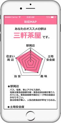 さらなる防災・防犯対策として、初めて上京(1人暮らし)する特に女性向けに、簡単な条件を選択するだけで、おススメの駅を紹介するコンテンツも開発中です。