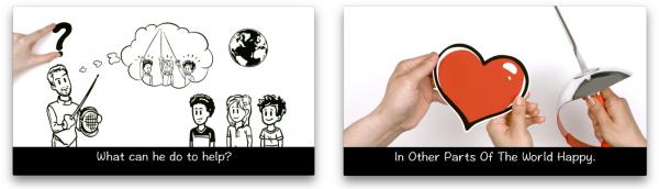 人間は本能的に指で示された場所に思わず注目してしまう原理を利用して、重要なイラストや場面転換を手で行いアテンションを高める工夫をしています。また、メッセージに脳を集中させるべく、視覚情報は少なくして、白黒の色構成にしています。アナログさとデジタルの融合が、ハイビジョン画面でもスマートフォン画面でも視聴者の心に親しみと共感を生み出します。他にも科学調査に基づいた様々なテクノロジーがsimpleshowには用いられています。