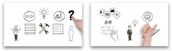 世界一周旅行中の主人公、ケンは街やホームで見かせるデコボコの板が気になります。動画では、日本で発明された点字ブロックの歴史や「なぜ」重要なのか、徐々に理解していく主人公の姿を通じて、見ている人に点字ブロックの重要性を記憶させ、共感させる物語となっています。