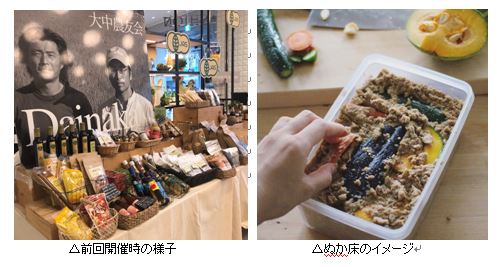 また、手軽にぬか漬けを楽しんでいただける「わたしのぬか床」も販売いたします。容器の中には有機米ぬかがパックされていますので、ご自宅で簡単にぬか漬けを作っていただけます。ぬか床の手入れに役立つ、炒りぬか、天然塩、鷹の爪、昆布、梅干しなどの食材も合わせてご提案いたします。