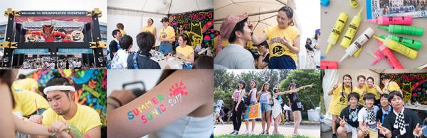 ソニッカートは、国内最大都市型音楽フェスティバル「SUMMER SONIC」(以下、サマーソニック)内の人気アトラクションのひとつです。日本を代表するグラフィックアーティストたちのライヴペイティングを中心に、ボランティアスタッフと共にアトラクション制作やボディーペインティングなど、アートの楽しさを伝える活動しています。