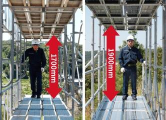 従来の足場より200mm高く、広い作業空間と高い安全性を実現。