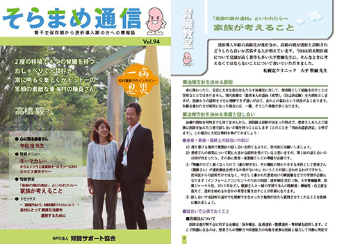 NPO法人腎臓サポート協会の情報誌「そらまめ通信」は、患者さんのインタビュー記事、