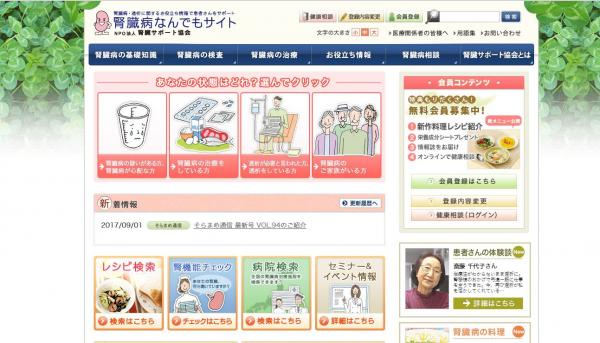 NPO法人腎臓サポート協会では、ホームページ『腎臓病なんでもサイト』などを通じて、腎臓病患者さんとそのご家族に役立つ情報を提供しています。また会員の方は無料で腎臓病のオンライン相談を行っております。