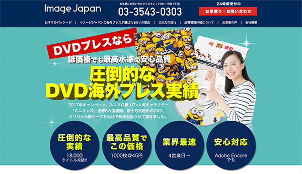 DVDプレス初心者向けページ:http://www.imagejapan.com/LP_press/lp_press01.html