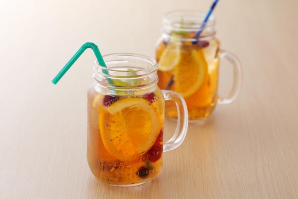 リプトンの香り豊かな水出しアイスティーをジャーに注ぎ、たっぷりのフルーツを入れました。