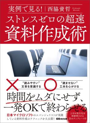 株式会社あさ出版(東京都豊島区池袋/代表取締役:佐藤和夫 http://www.asa21.com )が出版した、『実例で見る!ストレスゼロの超速資料作成術』著者西脇資哲が、8月11日にキンドル電子書籍で配信開始いたしました。