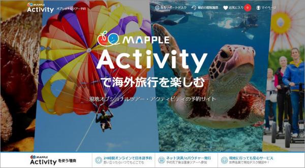 「MAPPLE Activity(マップル アクティビティ)」(⇒https://www.mapple-tour.com/ )は旅ナカ(現地)でより旅を楽しむためのオプショナルツアー予約・販売代行サービスです。すべて日本語でのご案内で、予約~決済・バウチャー発行まで全オンラインで対応。現地のアクティビティ参加を安心サポートします。