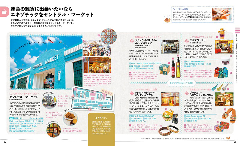 ことりっぷおすすめのカフェや雑貨、おみやげの情報ももちろん収録。首都クアラルンプールのすべてを網羅した特集となっています。