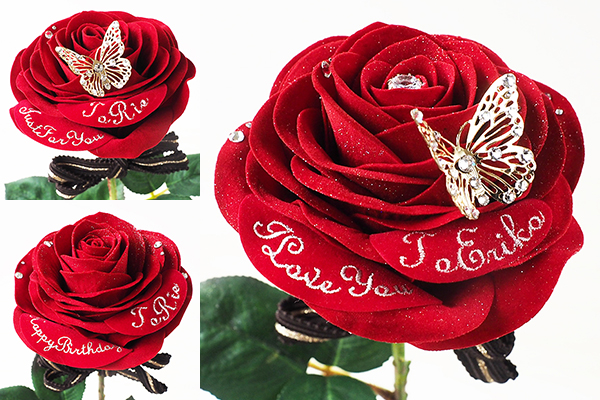 ◎名称:メッセージフラワー人気No.1赤バラ(名前刺繍入り)