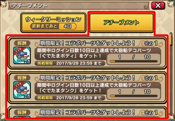 冒険画面>ミッション>アチーブメント