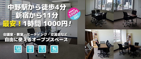 中野最安を目指して英語教室のスペースや急な会議、ちょっとした作業空間が必要になった時など多目的にお使いいただけます。
