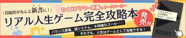 未来創造株式会社(東京都文京区)が運営する小説投稿サイト『トークメーカー』(http://talkmaker.com/)は、トークメーカー投稿作品が、ちくまプリマー新書より『リアル人生ゲーム完全攻略本』(https://www.amazon.co.jp/dp/4480689893)として10月4日に発売されることを発表しました。