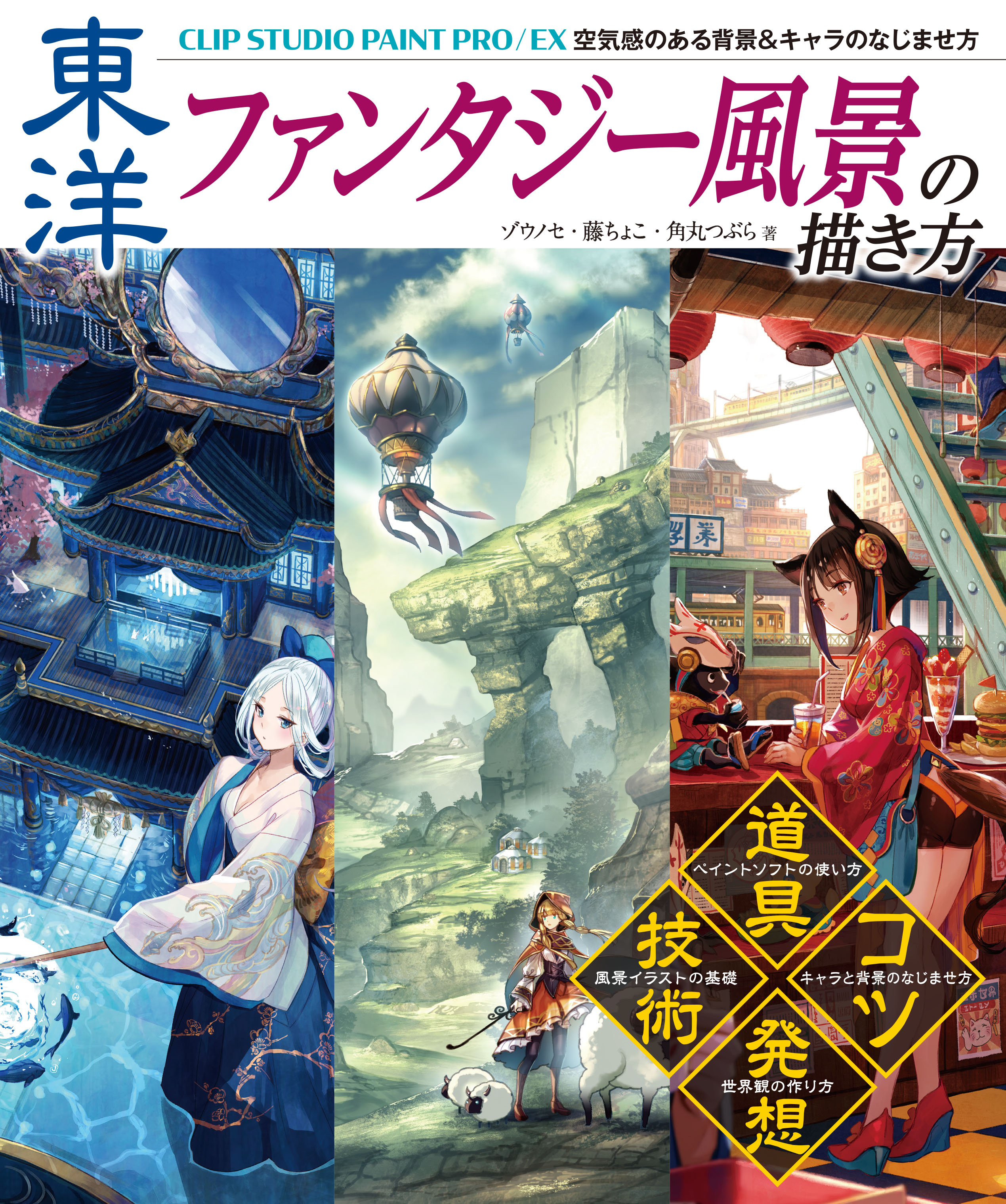 東洋らしいファンタジーイラストを描くための知識、テクニック、アイデアと厳選されたCLIP STUDIO PAINTの使い方を学べる一冊です。