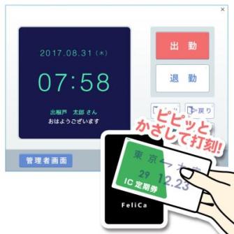 お使いのパソコンとICカードで勤務時間を打刻して、総勤務時間と