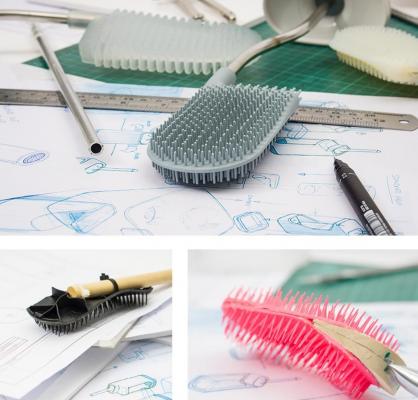 その結果、耐久性が高く柔軟性に富んだ「EVA樹脂」を使用し、先端に丸みを持たせ、ブラシヘッド上部側面にも“毛”をつけたデザインにたどり着きました。
